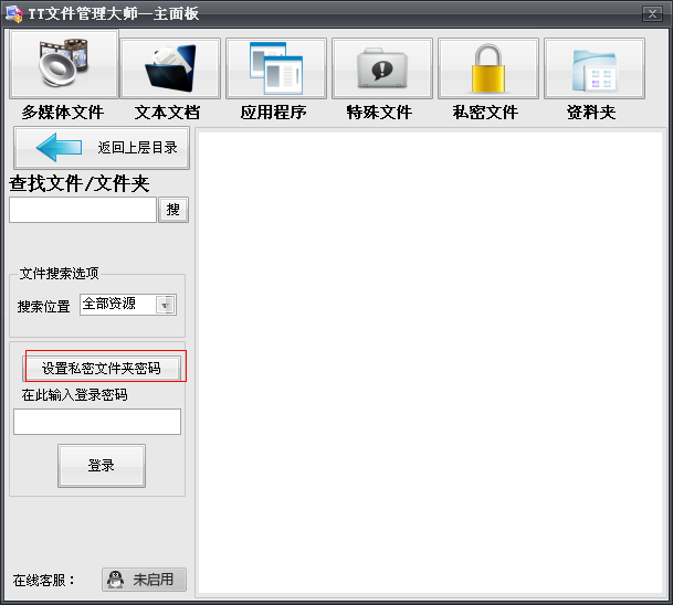 1.打开主界面——设置私密文件夹密码(右侧中间处)