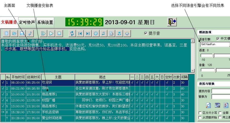 2、可以定时循环朗读语音广播内容,也可以随时手动播放广播内容。
