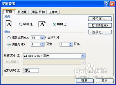 3.在“纸张大小”框中,将原来的B4设置为A4,然后在“缩放”栏下,选中“调整为”,将“页宽”和“页高”两个输入框中的数字都设为“1”