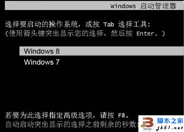 1.开机后win8是默认系统,如果选择win7,势必会重启再进入win7