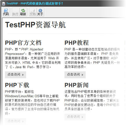 TestPHP是PHP代码快速执行调试好帮手!在Windows下开发PHP过程中,有的时候需要编写调试一段代码,Windows下又无法使用php -a,PHP新版的内置服务器打开调试编写起来又太麻烦,所以开发TestPHP!