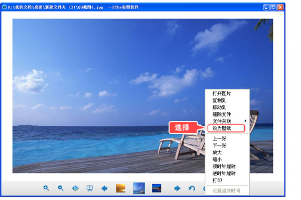 点击菜单按钮选则“文件关联”后选中“关联所有”完成关联所有图片文件,需要取消时选择“取消所有”侧取消所有图片文件关联。