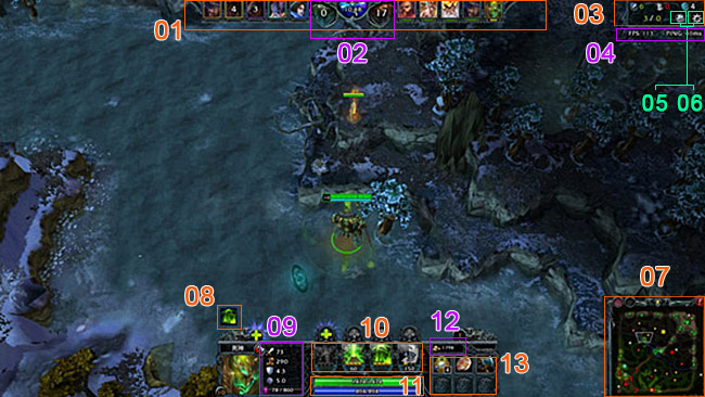 (13) 玩家英雄的包裹,用来携带购买的装备和道具