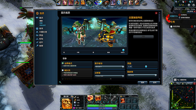 游戏中右上角可以打开游戏设置选项,用来设置包括“显示”、“音效”、“界面”、“控制”等。