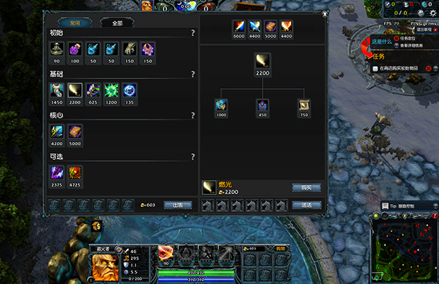 左键点击装备图标,将在商店右侧显示该装备合成所需的部件,以及该物品可以合成的更高级道具。