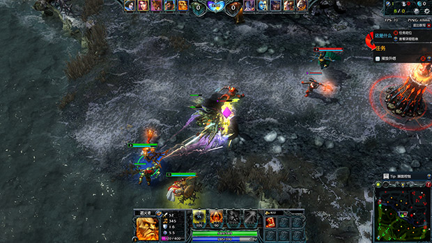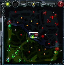 游戏界面屏幕下方有小地图,显示了整个地图的视野分布、中立怪物分布,并且可以直观的观察到玩家的动向。