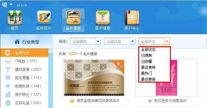 众所周知,名片是传播品牌形象重要的媒介,也是企业VI主要的组成部分之一,名片色彩往往要求与企业品牌或文化内涵相符。通过颜色筛选,能大大缩小查找范围,快速的选择适合模板。