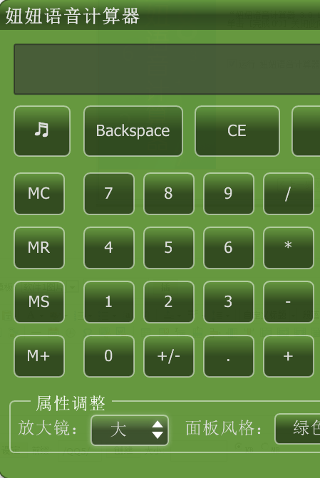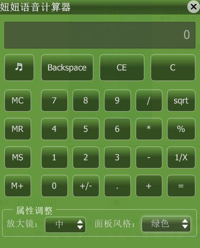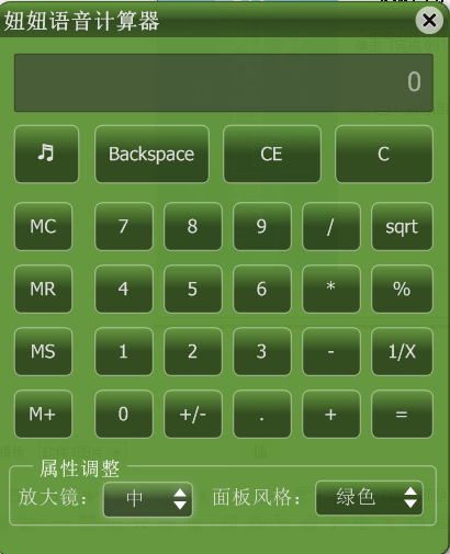 妞妞语音计算器是一款可以有真人发音帮助使用的语音计算器,按键发音,计算发音,计算结果发音,计算器界面设计的精美,可以自己选择计算器界面颜色,支持绿色、紫色、蓝色三种颜色的替换,软件还支持对计算器界面大小自定义调整,是款非常实用的计算软件。