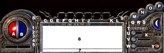 B : 魔法值显示(下面的数字为具体数值,战士在个人等级28级前不显示这项功能)
