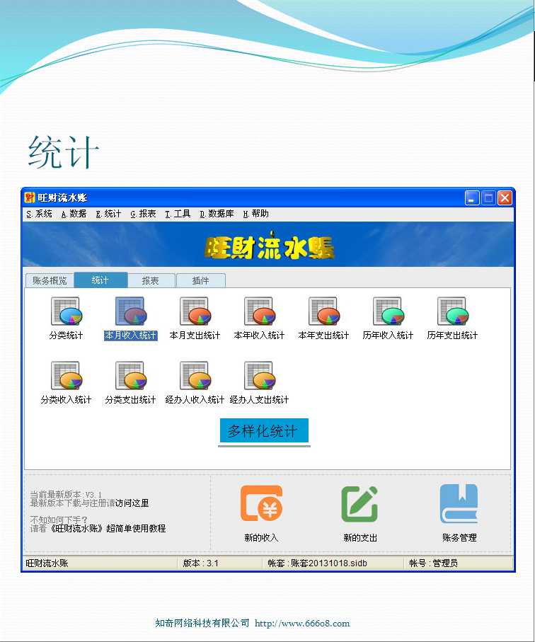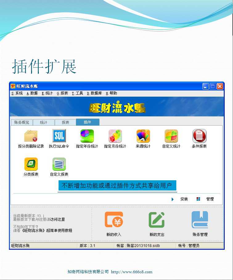 旺财流水账可以帮助您建立多个账套,记录账单简便支持自定义分类和图形报表显示,让管理的你财政收入支出变得如此简单。