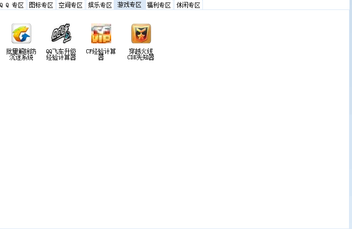 娱乐专区:Q币充值图制作、飞车信息娱乐、图标提取器、免费发短信、QQ骂人器、星座远程速配、吉普赛读心术、网页恶搞专家、手机关机