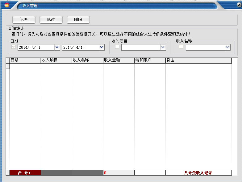 包括:日期、收入项目、收入名称、收入金额、结算账户、备注。