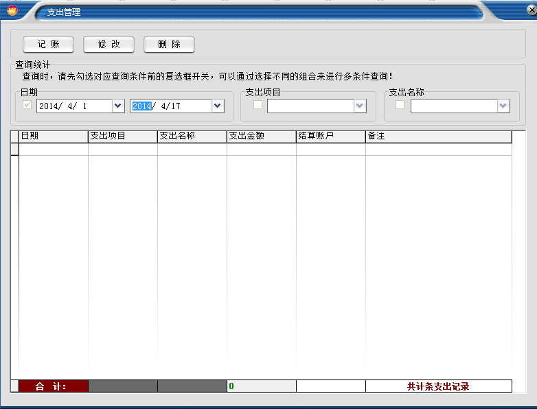 包括:日期、支出项目、支出名称、支出金额、结算账户、备注。