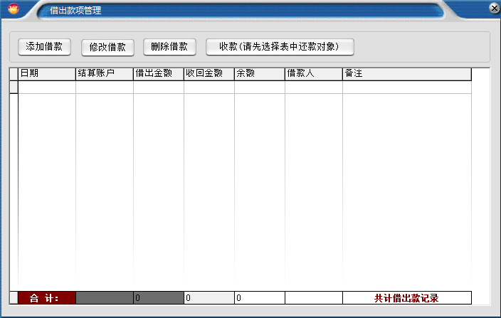包括:日期、结算账户、借出金额、收回金额、借款人、备注。