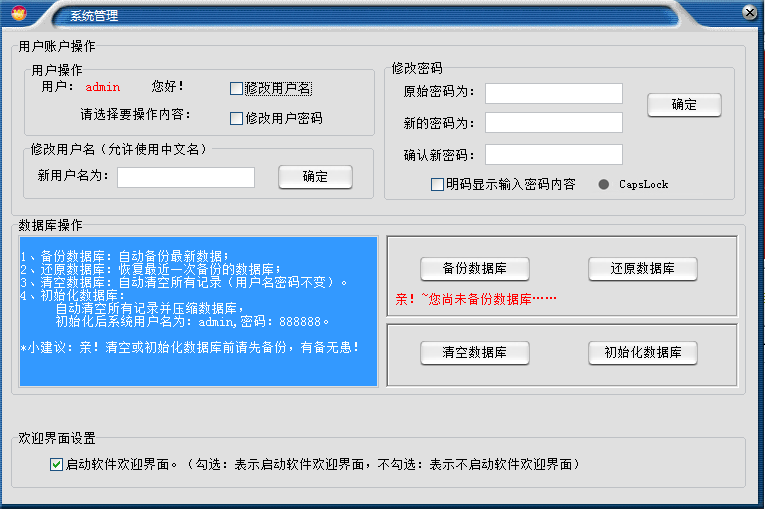 系统管理:用户操作,修改用户名密码、数据库操作。