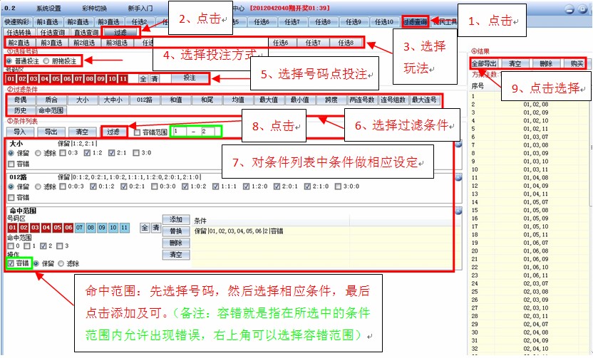 多种条件设定方式,最完美的过滤缩水杀号方式,降低成本提高中奖