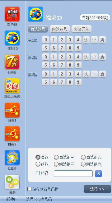 3D:直选选号、组选选号、大底导入