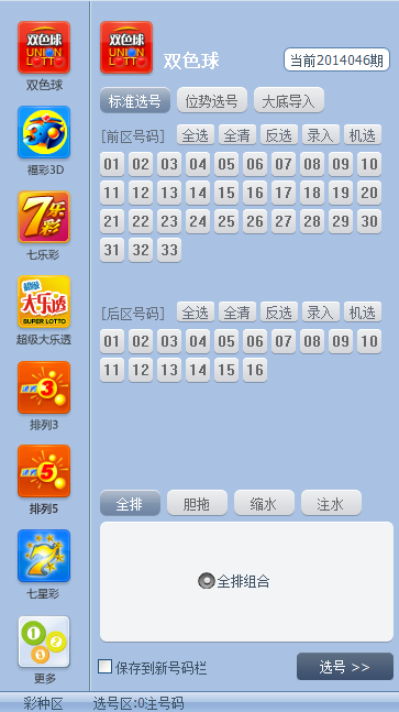 双色球:标准选号、位势选号、大底导入