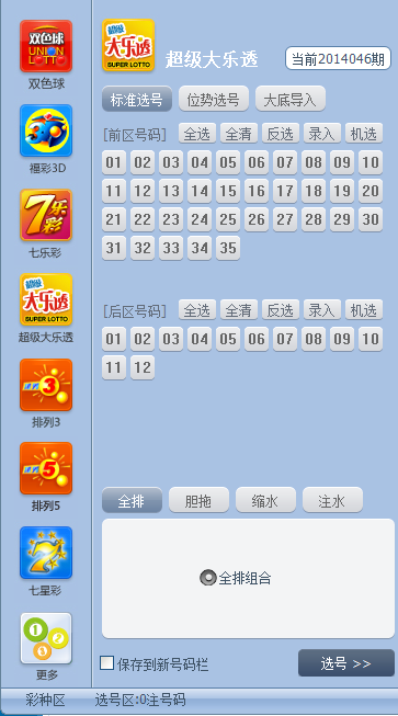 超级大乐透:标准选号、位势选号、大底导入