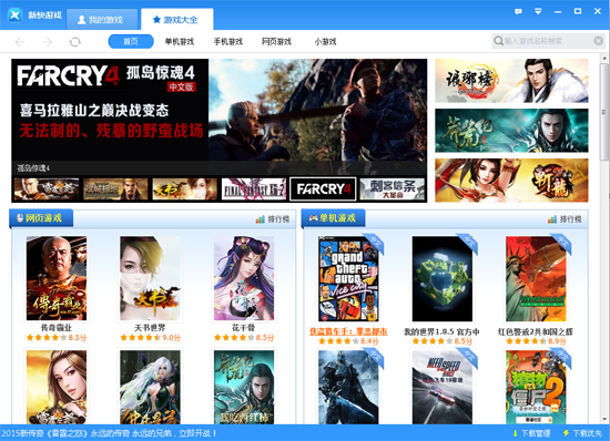 它集合了网络游戏、网页游戏、单机游戏和小游戏,所有游应有尽有,使用新快游戏下载的游戏不仅速度快,而且能够自动安装,游戏正版无毒,玩家可放心使用。