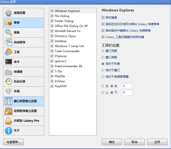 窗口类型独立设置