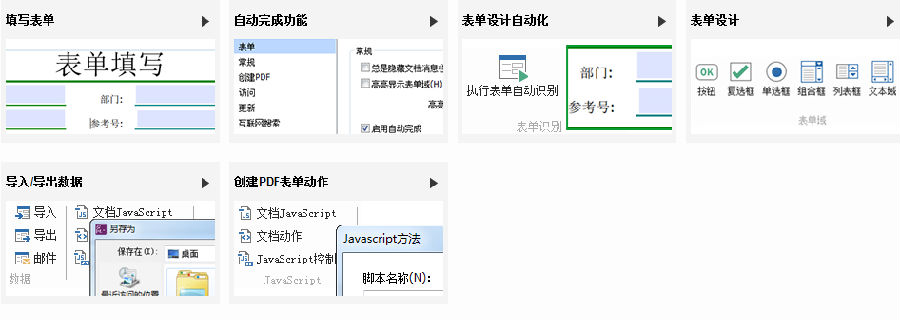 7、表单:填写表单、自动完成功能、表单设计自动化、表单设计、导入/导出数据、创建PDF表单动作