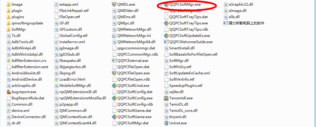3、找到QQPCSoftMgr.exe这个文件,双击运行即可进入QQ软件管理