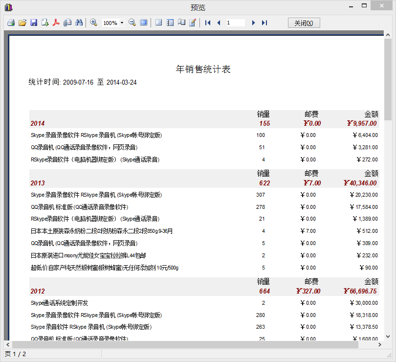 报表的打印以及导出,可以方便的对报表进行打印和导出为其他格式的文件