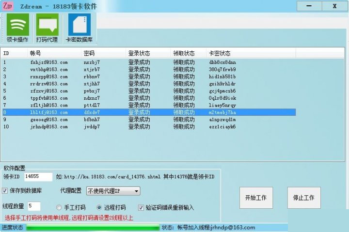 18183多线程领卡软件是一款专门用来领取18183发号平台各种礼包卡的辅助工具,18183发号中心经常会发放一些手机游戏的礼包、激活码、新手卡之类礼包卡密,有接触的朋友都知道,一些热门的礼包是不是很难抢到,那就得需要使用辅助软件来帮你抢了。这款18183领卡软件,多线程运行帮助你最大限度领取到礼包,适合手游游戏玩家和卡商使用。