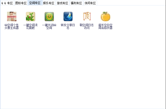 空间专区:QQ空间个性头像生成器、一键空间浇花施肥、一键关闭QQ空间、转发分享日志、刷空间日志访问、超长空白空间名修改器