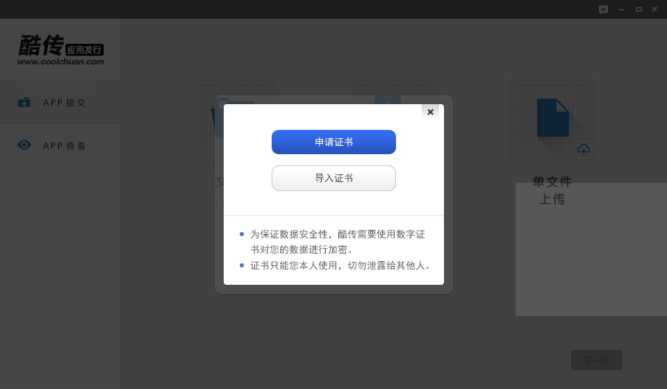 1、安装注册好酷传之后,使用需要注册酷传帐号,进入酷传需要客户端证书