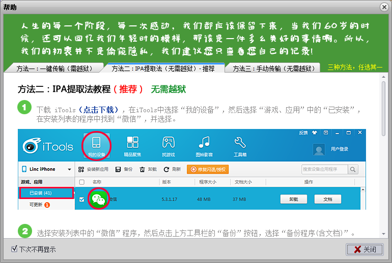 软件提供三种方法供用户选择,任选其一即可,点击软件上方的帮助菜单按钮即可查看到三种详细方法!