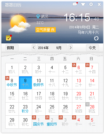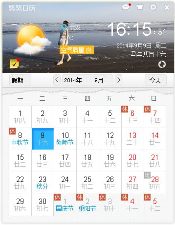 当前位置:星空最新网上盘口系统工具桌面工具 → 悠悠日历 2.0.0.1204 官方版