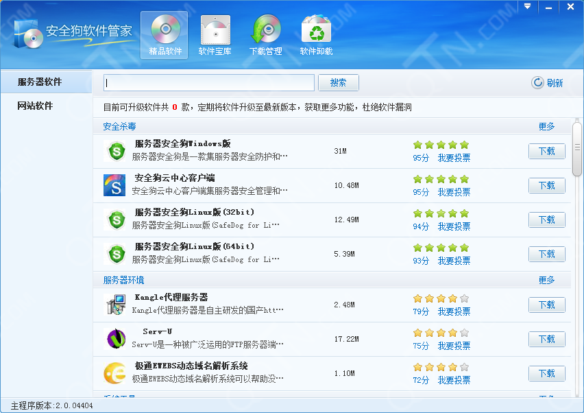服务器安全狗2合1杀毒体验版新增杀毒、服务器优化功能,另外加入定时任务、软件管家,并且使用本版本还能直接调用云备份、服务功能,多方位保护你的服务器,让你的网站无懈可击!