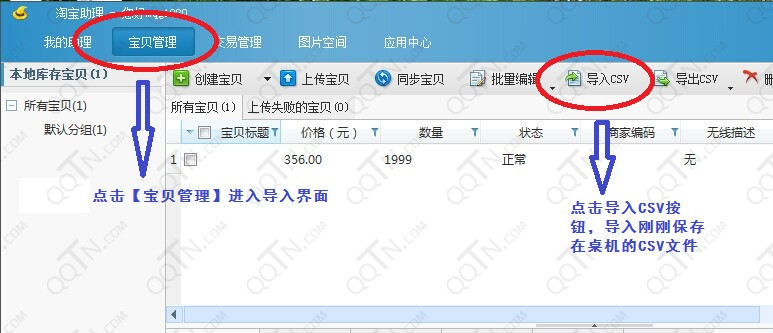 第二步:等导出完成后,打开淘宝助理,按下图操作