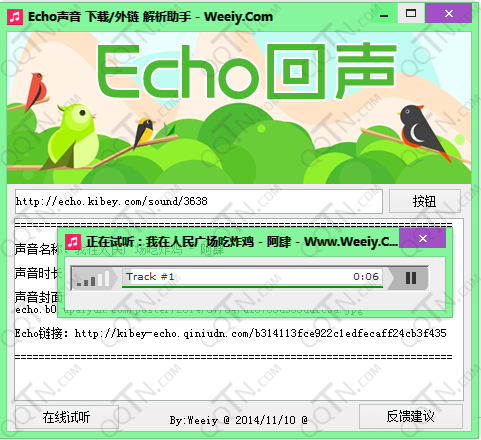 Echo回声网App音乐外链下载解析助手:专用于解析Echo回声网的各种声音的外链地址进行引用及下载。