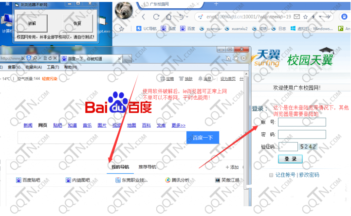 2、打开IE浏览器不断网神器,点击破解
