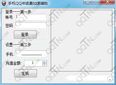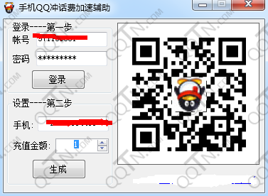 3、登录QQ,输入手机号码,设置最低充值金额,支持最低充值多少就设置多少,点击生成