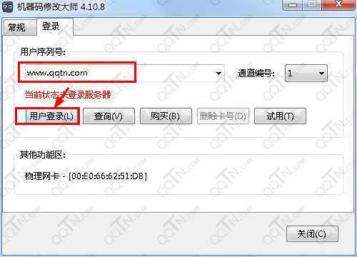 在用户序列号中输入“xeoknsl.cn”,点击用户登录