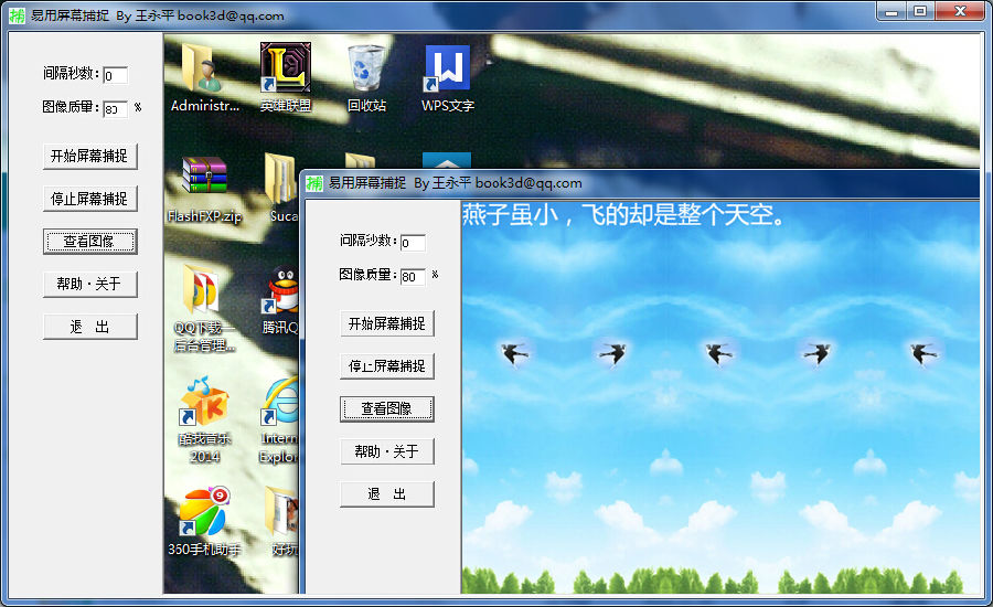 《易用屏幕捕捉》是一款简易的、极易上手屏幕捕捉软件,使用此软件可以实现在前台或后台对屏幕、随时连续抓拍屏幕图像,方便制作教程或相册,指定窗口进行连续捕捉,图像自动存储为MDB以供查看;可以自定义抓拍间隔并能随时改变,手动精确截图可以直接对截图进行画图操作后保存。