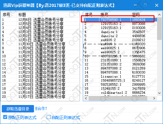 2、列出每日更新迅雷账号,单击获得帐号