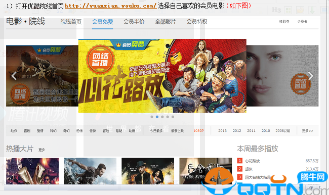 1、打开优酷院线星空最新网上盘口://yuanxian.youku.com/选择自己喜欢的会员电影