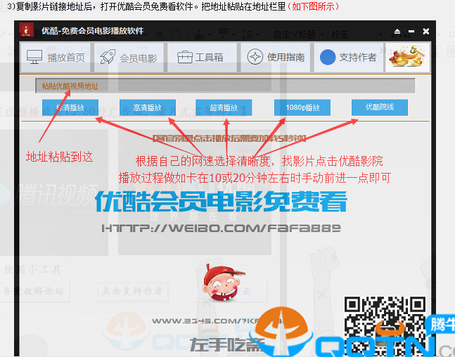 1、优酷会员电影免费看,只需粘贴视频链接就能观看