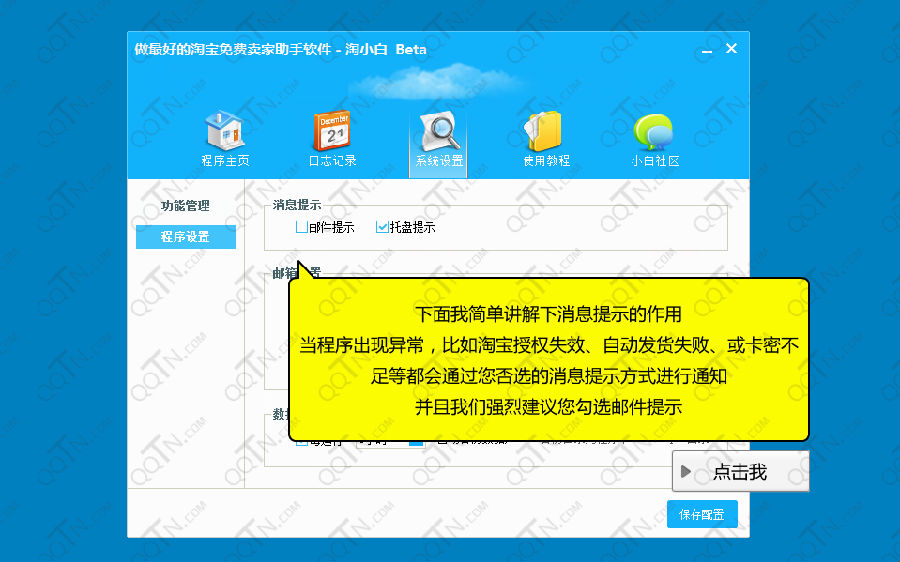1、在使用卖家助手前必须订阅千牛相关消息,如下图所示,点击千牛设置