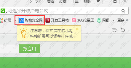 7、添加成功,在浏览器右上方扩展栏,点击进入购物党实时比价工具进行设置使用