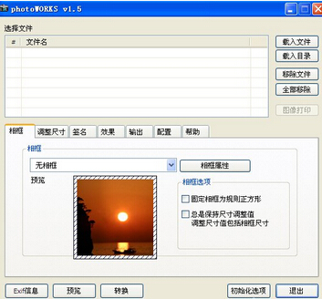 photoworks是一款简单易用的照片修改软件,photoworks的主要作用就是为照片添加边框。除了它自带的众多边框效果外,你也可以把边框模板改造成自己的风格,并且你还可以在边框上加上签名、EXIF信息等。个性化设置虽多,不过伴随而来的也是参数界面比较繁杂。