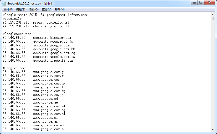 2015谷歌hosts文件已经更新至0901,无法访问谷歌请及时更新!