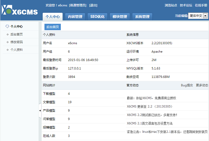 X6CMS全名小六网站内容管理系统,是一款功能完善免费开源的网站内容管理系统。X6CMS采用采用PHP+MYSQL架构,全站内置SEO优化机制,界面简介,操作方便,会打字就能建站!