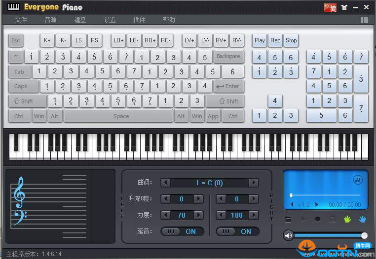 13、支持录音、放音、乐谱显示、移调、8度音区调整等多项功能。