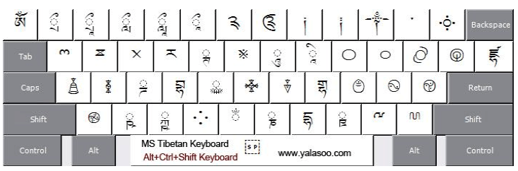 4、Alt+Ctrl+Shift键盘, 对应与国标藏文键盘中的第四个键盘 :